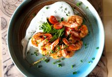 Королевские креветки с соусом дор блю